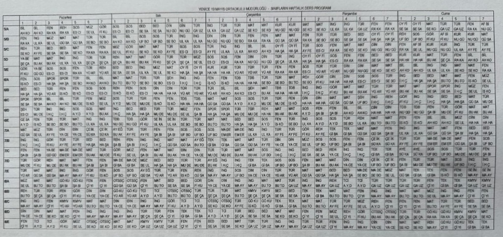 Haftalık Ders Programı